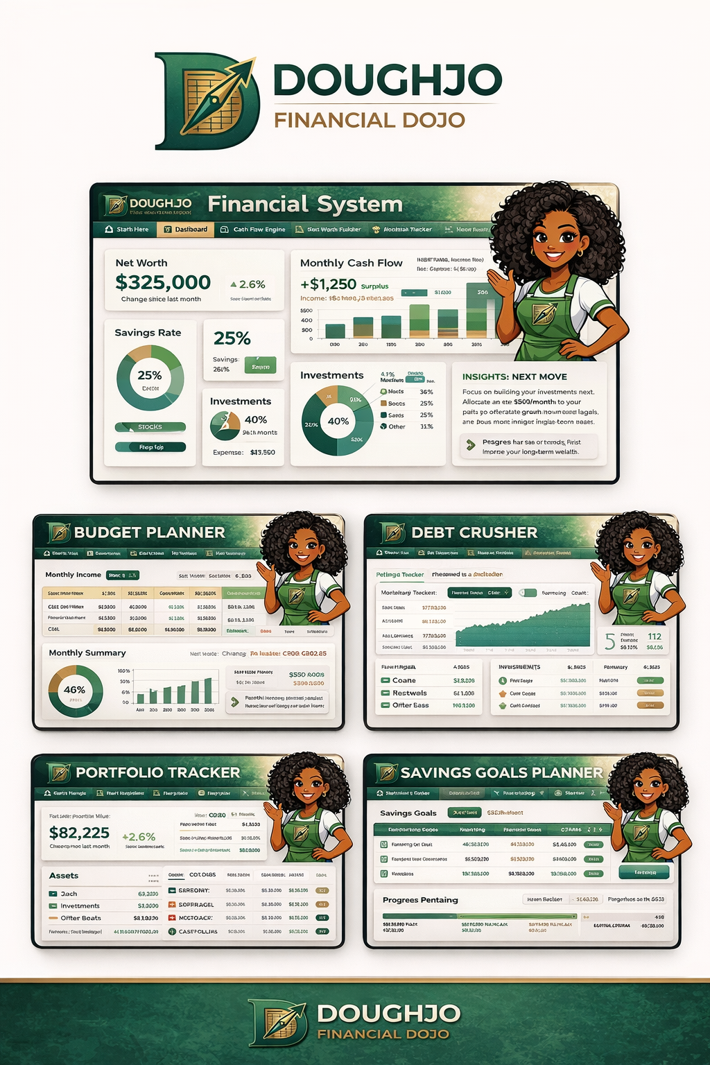 All five templates in one bundle. The complete system for taking control of your financial life, from budgeting to investing.